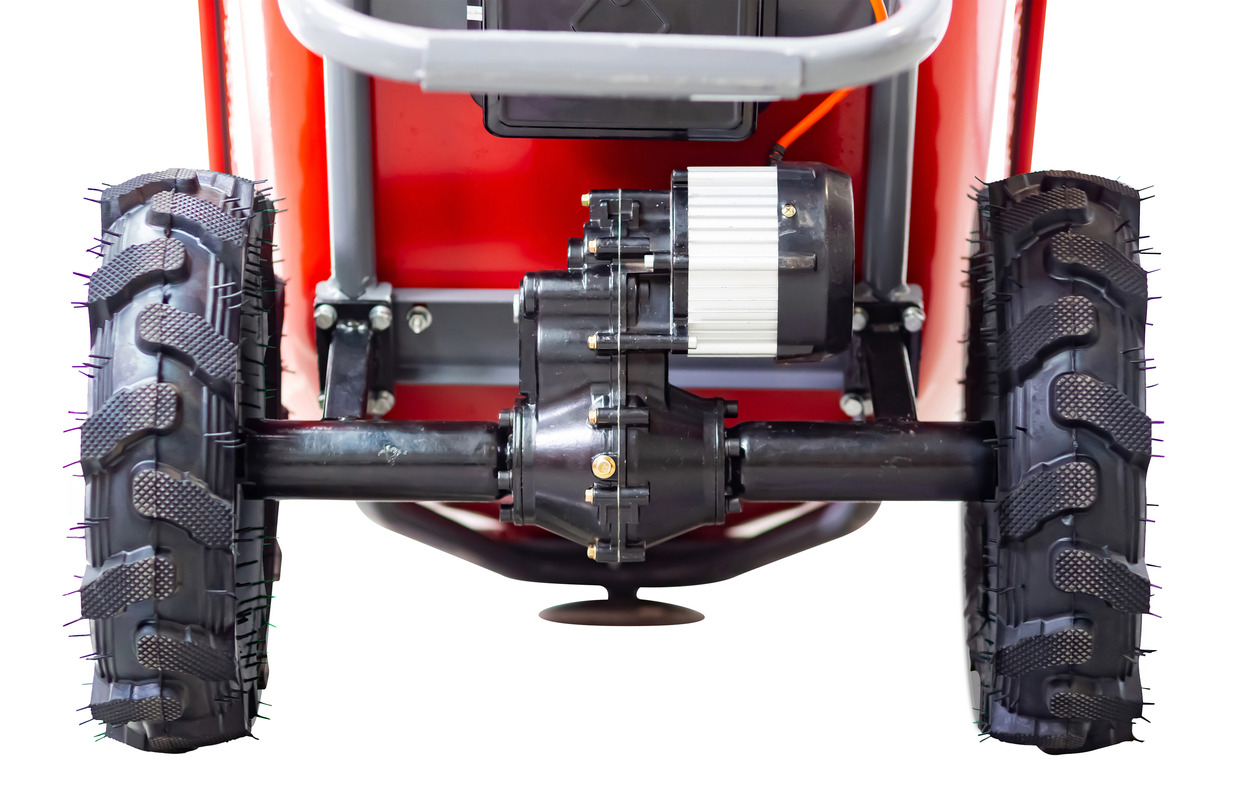 Brouette polyvalente alimentée par batterie avec des caractéristiques de conduite extrêmement stables et confortables, grâce à un double essieu avant avec différentiel. Particulièrement adaptée aux surfaces irrégulières et inclinées telles que les chantiers ou les zones rurales.