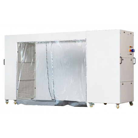 - Cabine mobile sur roues : elle peut être utilisée au milieu de l’atelier, près des véhicules, même là où il n’y a pas de possibilité d’extraction d’air.