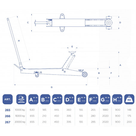 - Châssis lourd avec grandes roues pour un déplacement rapide du cric malgré son poids propre élevé