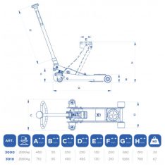 - Crics de machine à faible hauteur minimale. Disponibles en 3 tonnes (716190003), 8 tonnes (716190008), 10 tonnes (716190010) et 20 tonnes (716190020).