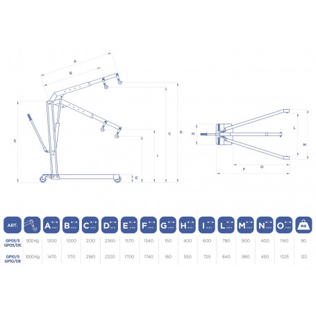 Grue de garage pliable 500 kg.
