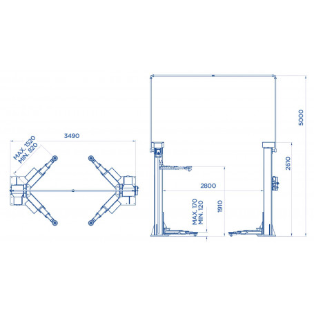 - Disposition torsadée des colonnes : le centre de gravité se trouve devant les colonnes. Cela permet au conducteur d’entrer plus rapidement le véhicule pour démarrer immédiatement le levage