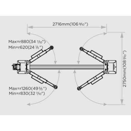 - 2 bras télescopiques symétriques, convenant également pour les véhicules plus lourds et plus longs