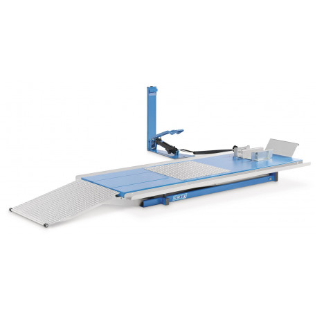 Pont moto hydraulique OMCN d’une capacité de 500 kg avec pédale de commande.