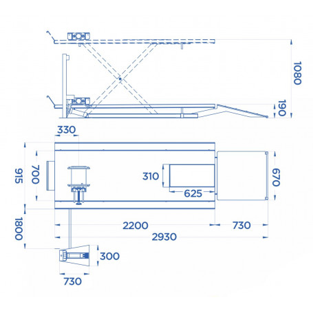 • Dimensions totales 2930 x 915 mm (rampe d’accès et plateaux à outils inclus)
