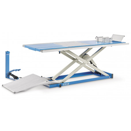 • Rampe galvanisée rétractable. La rampe se rétracte partiellement sous la table lors du levage, créant automatiquement plus d’espace libre autour du pont