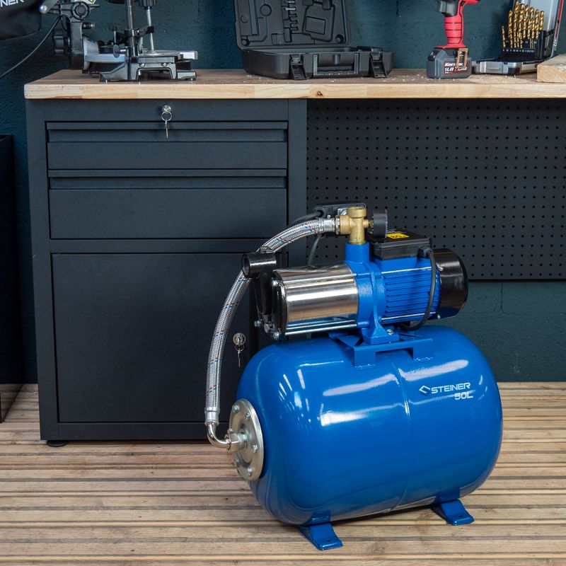 Son moteur électrique monophasé de 1300W est protégé par un disjoncteur thermique afin d’éviter toute surchauffe. Son réservoir pressurisé de 50L maintiendra une pression d’alimentation minimum dans votre installation et limitera le nombre de démarrage et d’arrêt de la pompe pour une plus grande longévité.