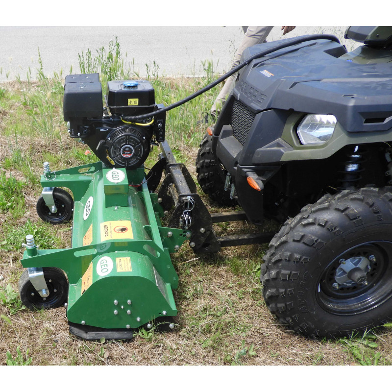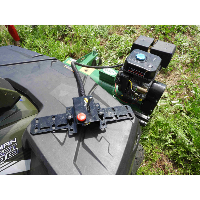 Ce broyeur frontal (avant) à herbes se fixe au centre du châssis d’un véhicule (Quad, SSV, 4×4) par l’intermédiaire d’une attache/double longeron et d’un kit universel (en option). Tondo-broyeur performant et permet une bonne tonte horizontale.
